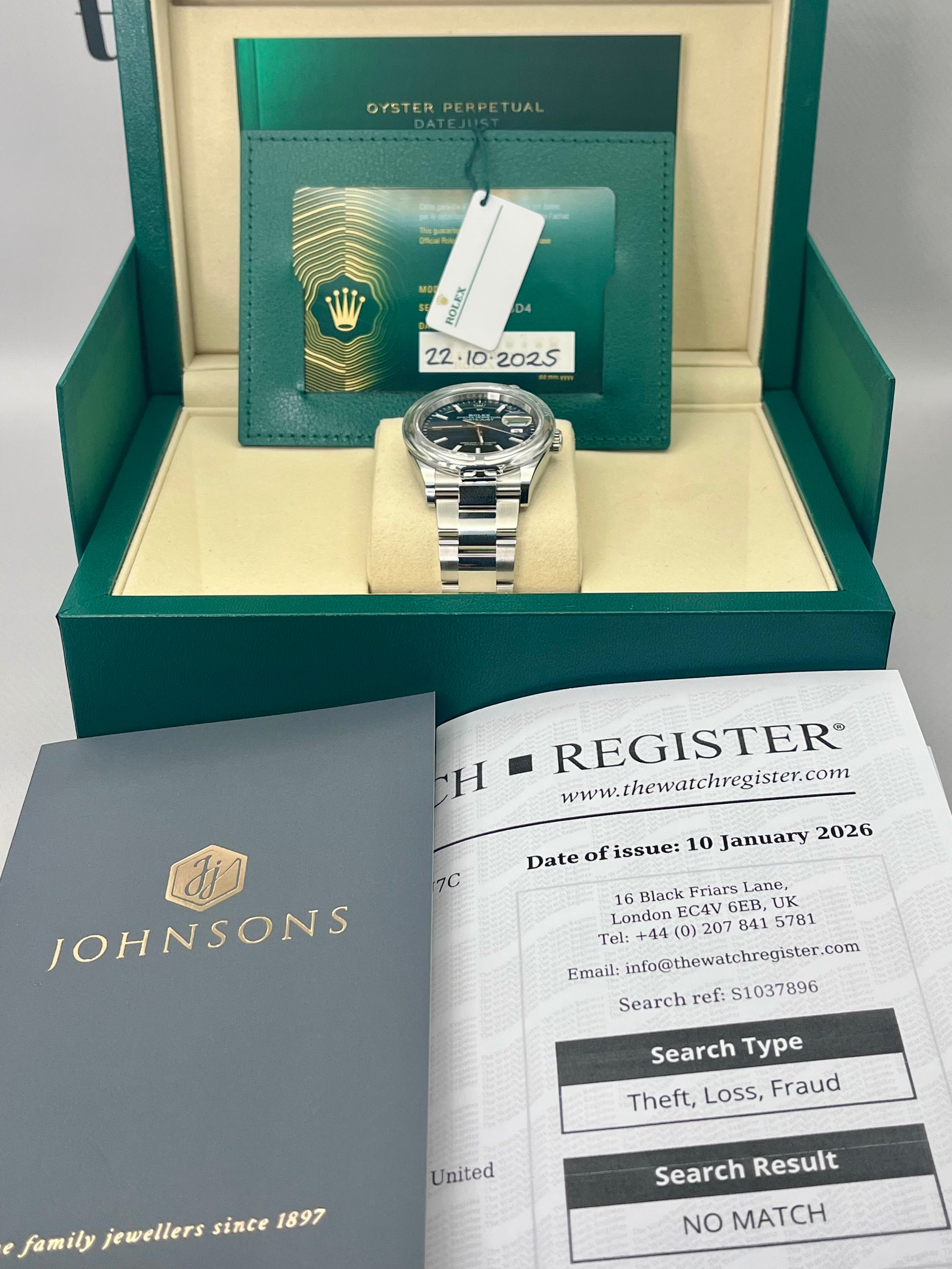 | Warranty | Rolex manufacturer warranty to October 2030 |